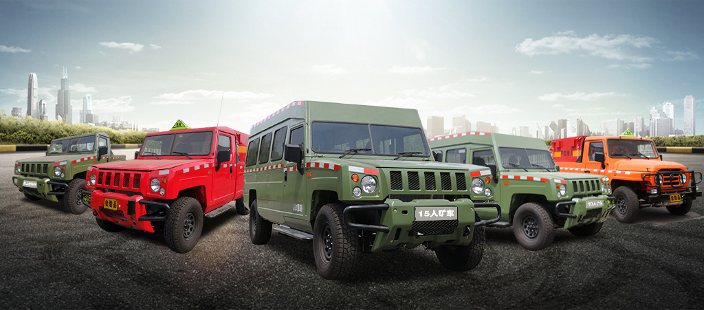 煤安車系列源于勇士二代軍車外型, 外觀威猛霸氣,標配分時四驅,采用全封閉多盤濕式制動器, 安全可靠。發動機采用慶鈴(五十鈴)防爆柴油機,輸出扭矩大,達國三排放標準。